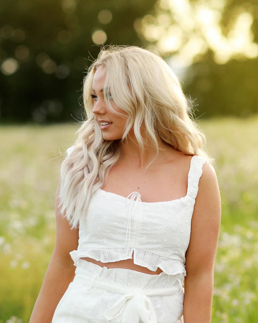 Effortless and easy in the Lilith white embroidered crop top. Pair with the Blaire white embroidered shorts for a matching two piece set or with your favorite midi skirt for a breezy summer night. Also adorable for a bachelorette weekend or honeymoon.