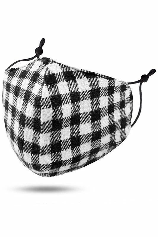 The Black and White Buffalo Plaid Cloth Face Masks are the perfect addition to your winter wardrobe. Features a filter pocket (filter not included). Reusable and washable. These masks are non-medical grade adult masks, meant for general public use, and are not a replacement for medical-grade N95 or PPE.