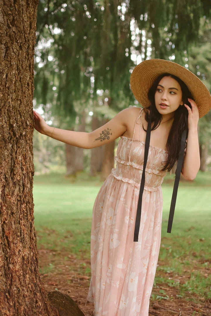 The Daydreamer Straw Hat makes a sophisticated statement with its wide brim and black grosgrain ribbon tie. This is a Confête favorite when paired with floaty sundresses.