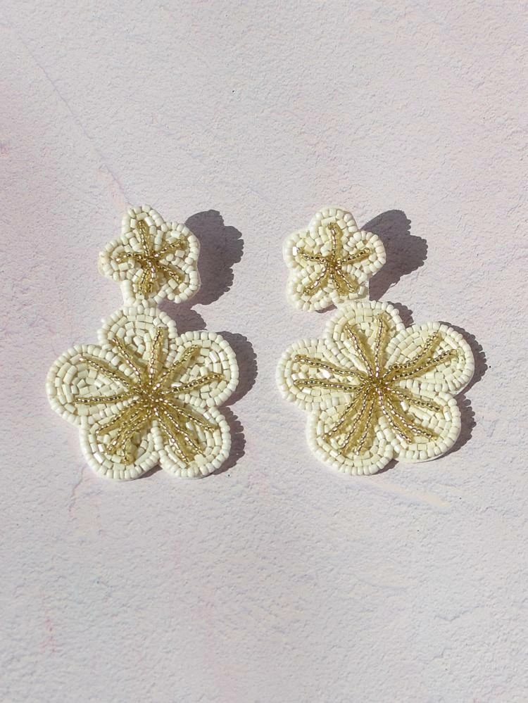 These Magnolia Double Drop Earrings are made from delicate cream and gold beading. Perfect for a warm weather evening or wedding welcome party when worn with our Annabelle Romper.