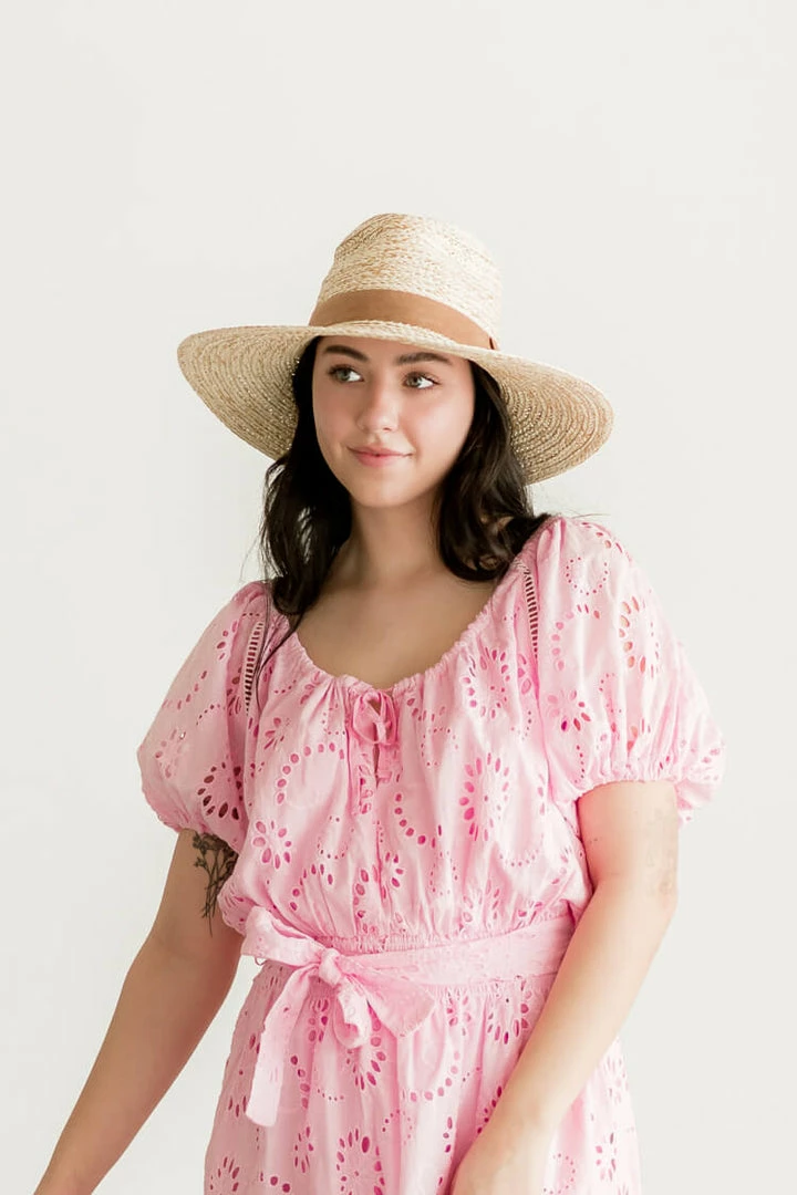 A classic straw fedora that goes with every spring and summer outfit. Detailed with a tan suede band. Adjustable ribbon inside to give you a perfect fit.