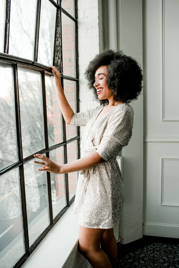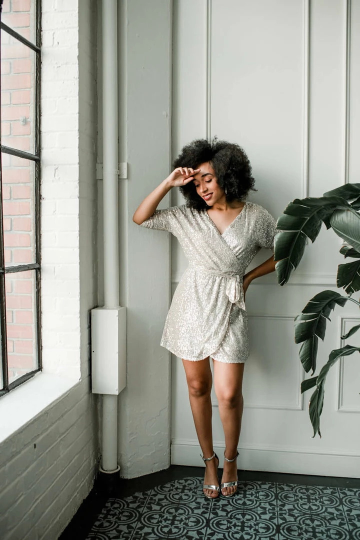 Dance the night away in the disco-style silhouette of our Bianca Sequin Style Wrap dress. This silver sequin mini sits just off the shoulders with three-quarter length sleeves and matching belt. Plenty of stretch in this style makes it the perfect holidays at home outfit.