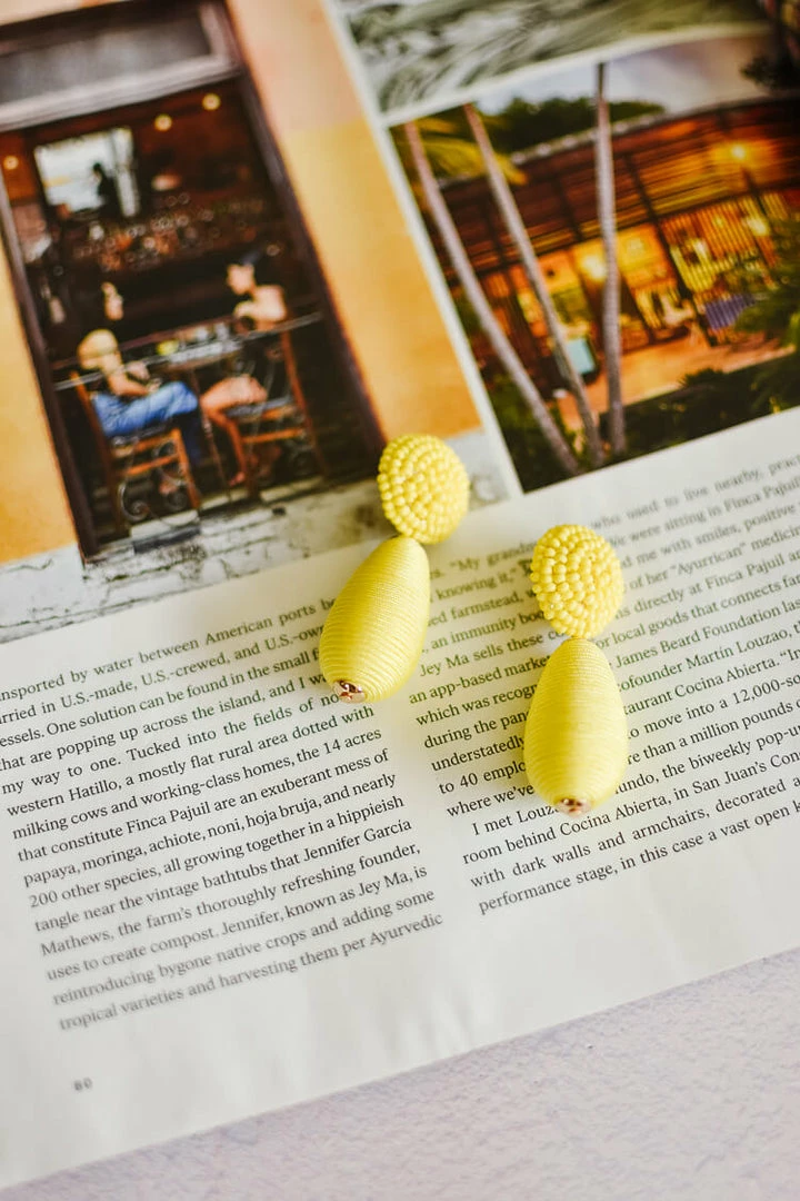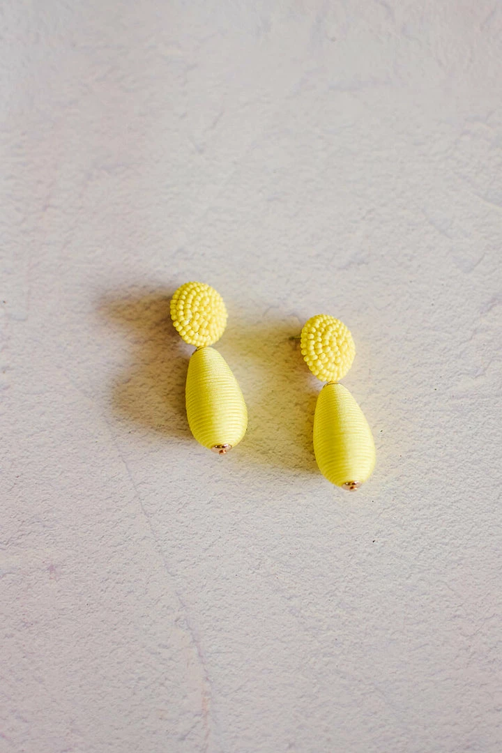 The Citron Drops are ready to make a statement this season at all your summery soirees. Featuring textured cording in bold yellow, sure to turn heads when paired with any outfit!