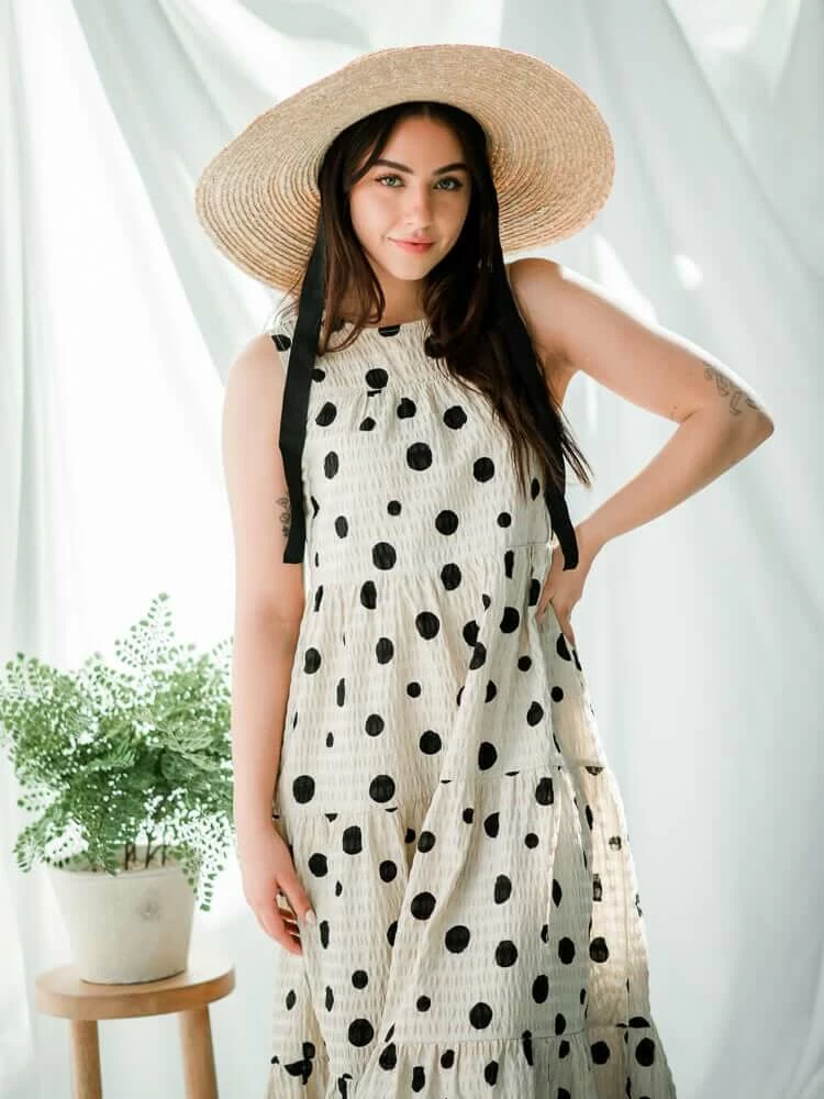 Confête Clothing Caroline Khaki Polka Dot Maxi Dress
