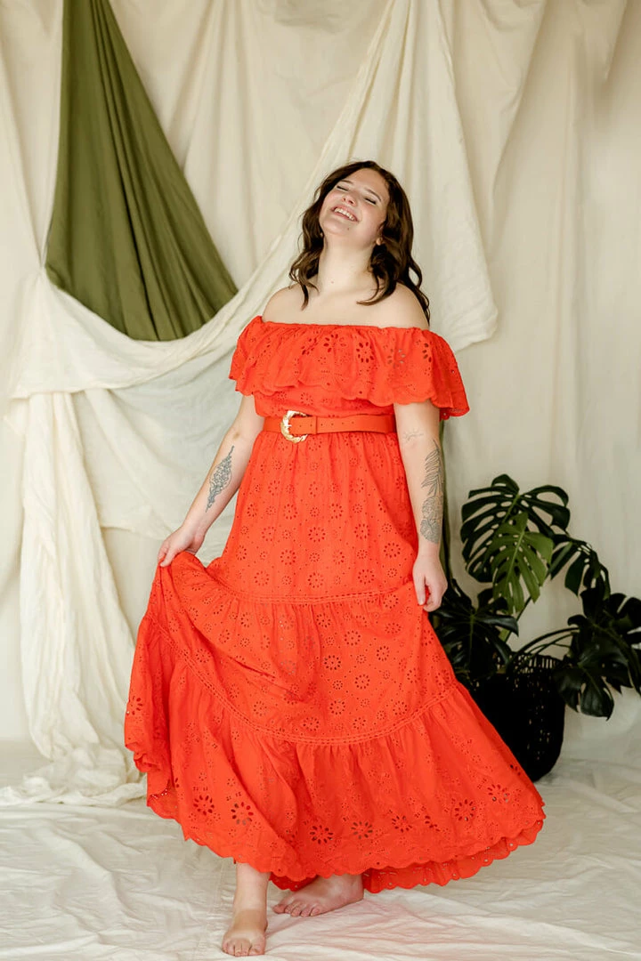 Confête Clothing Cecilia Orange Eyelet Maxi Dress