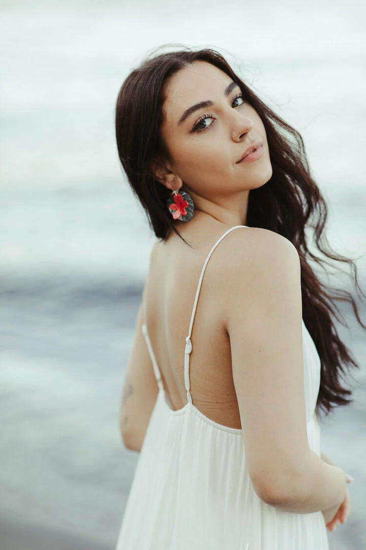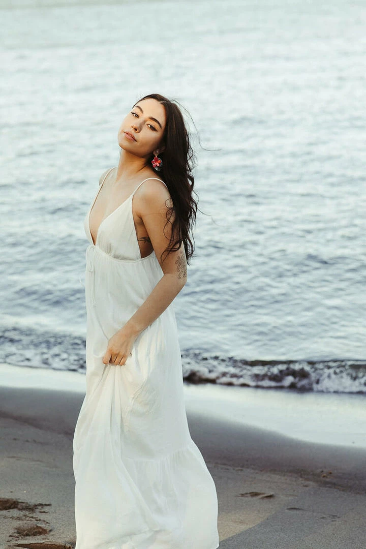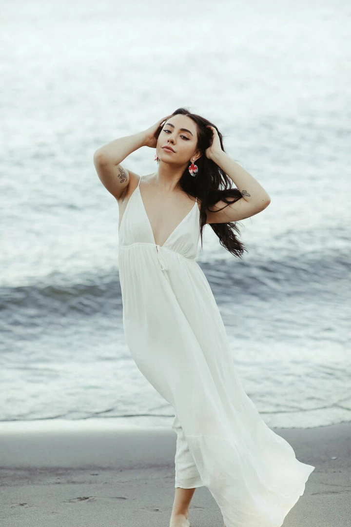 Looking for that classic white honeymoon dress? The Lisa Triangle Plunge Maxi Dress is exactly what you need on your honeymoon packing list. Featuring a deep V neckline and adjustable spaghetti straps. Fully lined. We also love it as a beach cover-up option. Pair with loose waves and our ? Palm drops.