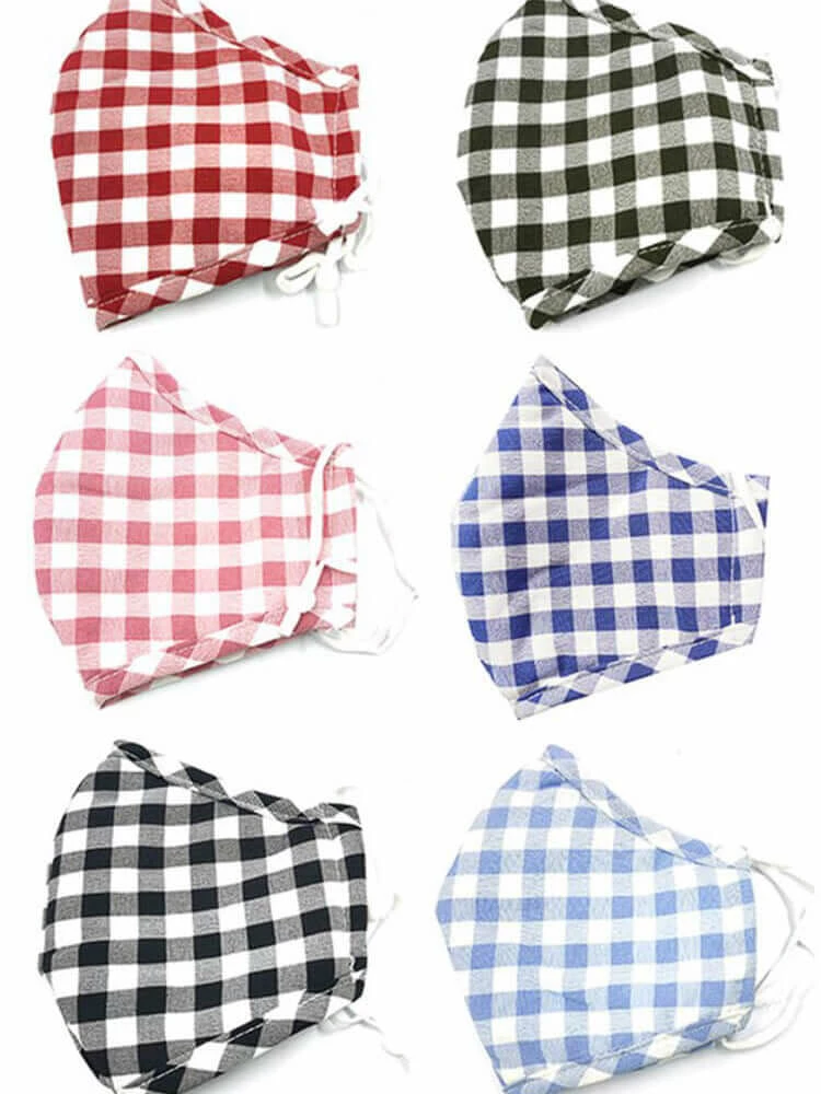 Add a little flair to your face mask with these Gingham Face Masks, available in light blue/white, pink/white, black/white, red/white, blue/white and olive green/white. 100% cotton. Adjustable ear straps. Reusable and washable. These masks are non-medical grade adult masks, meant for general public use, and are not a replacement for medical-grade N95 or PPE.