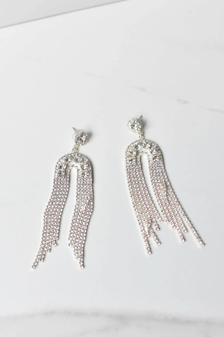 A statement earring is the best way to add a little pop to any outfit. The Kennedy Crystal Arch Earrings have post back closures and lightweight, shimmering crystal fringe details. Pair with a chunky knit or sleek jumpsuit for an outfit that says party.