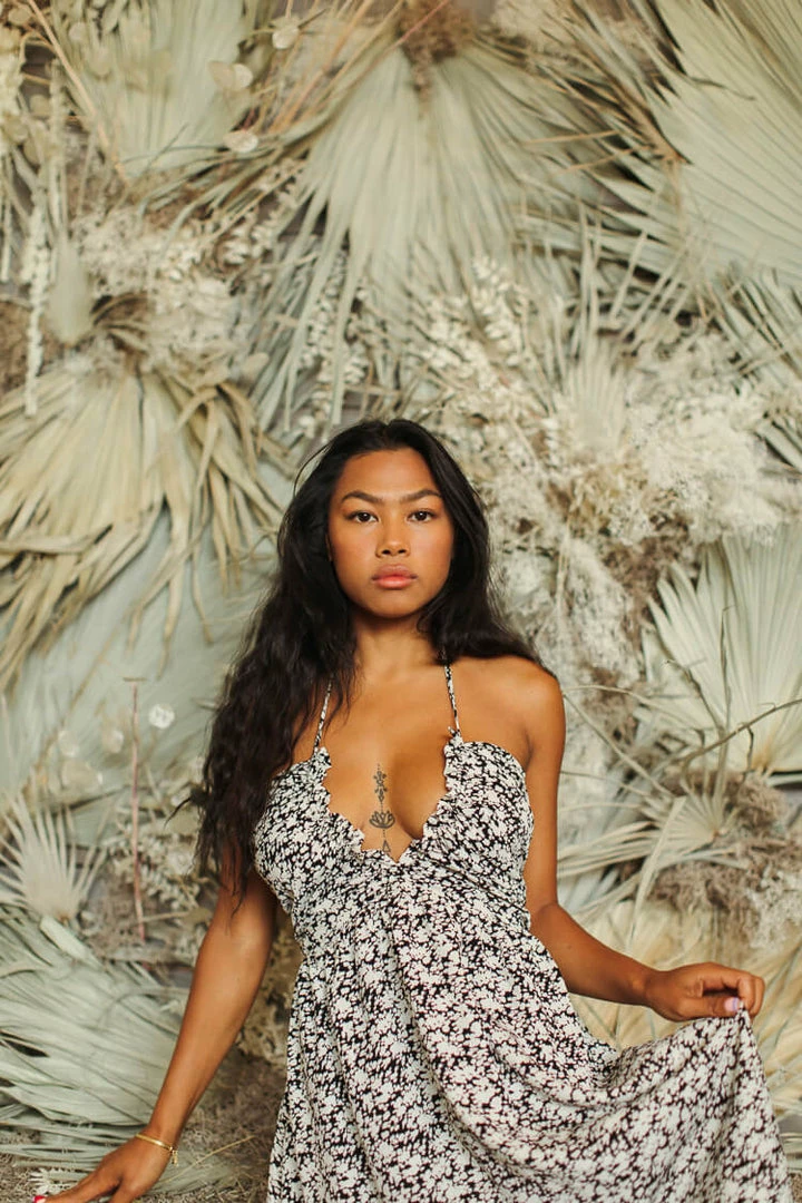 Confête Kyra Black Geo Print Halter Maxi Dress