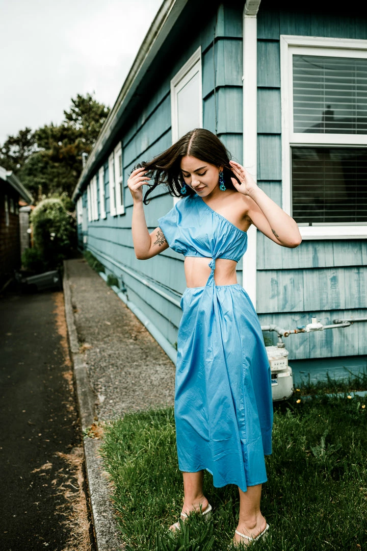 Confête Naxos Blue One Shoulder Cut-Out Maxi Dress Clothing