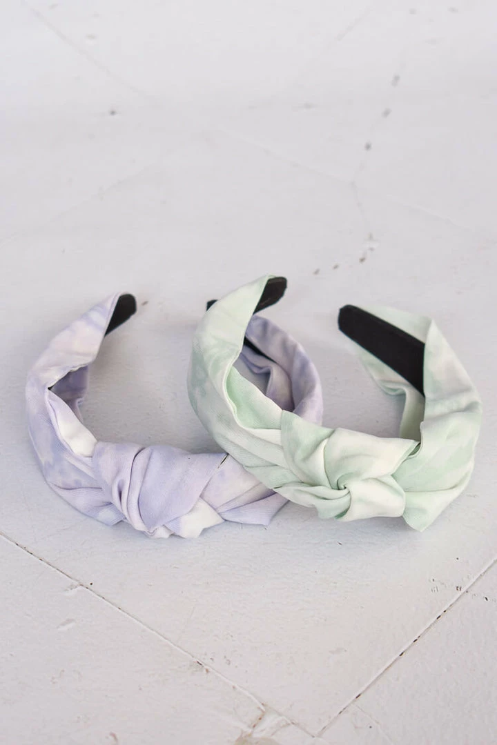 A statement accessory to mix and match with all your spring outfits. The Pastel Dreams Tie Dye headband is a classic style headband, draped with silky, pastel dyed fabric. 1 inch wide. Available in Lavender and Mint.