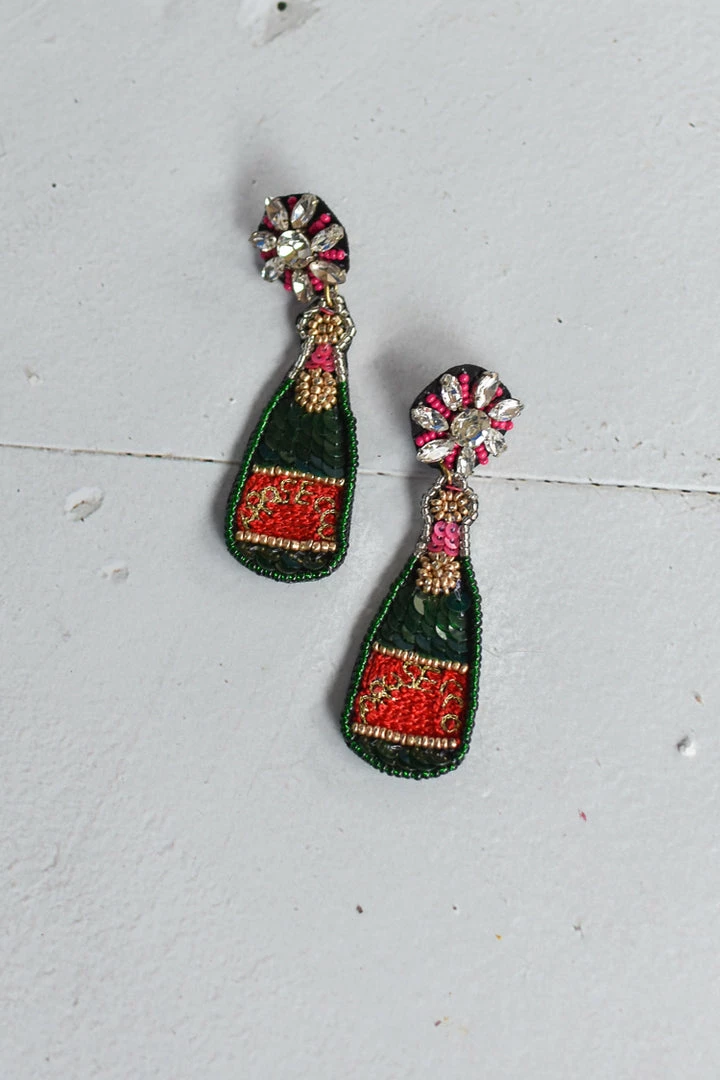 Be the toast of the town in our Prosecco Bottle Statement Earrings! With holiday celebrations scaled back this year, a statement earring is the perfect way to zhuzh up everyday outfits. Featuring seed beads and sequins, these drops have post fastening for pierced earrings.