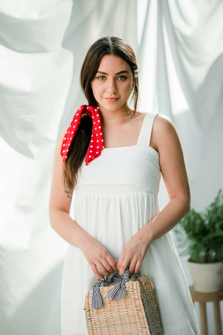 The finishing touch you need for every summer outfit. We love the versatility of our Red Polka Dot Hair Scarf Scrunchie. Wear it loose on a low pony for date night dinner or tie a bow on a top knot on warmer days. The soft fabric covered elastic secures your hair without pulling.