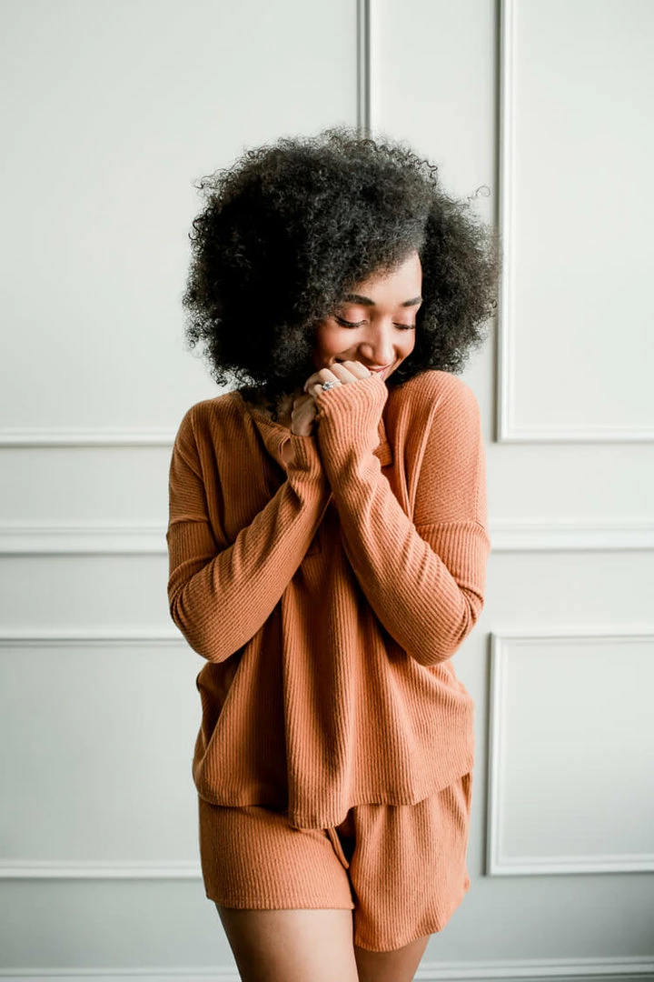 Everyone is looking for the perfect loungewear set to start the new year right. Our Rosemary Rib Knit Cozy Lounge Set is a luxe yet affordable option. Available in both Terracotta and Ivory, it’s cut from fabric that is super soft yet still a weight knit. Drawstring shorts.