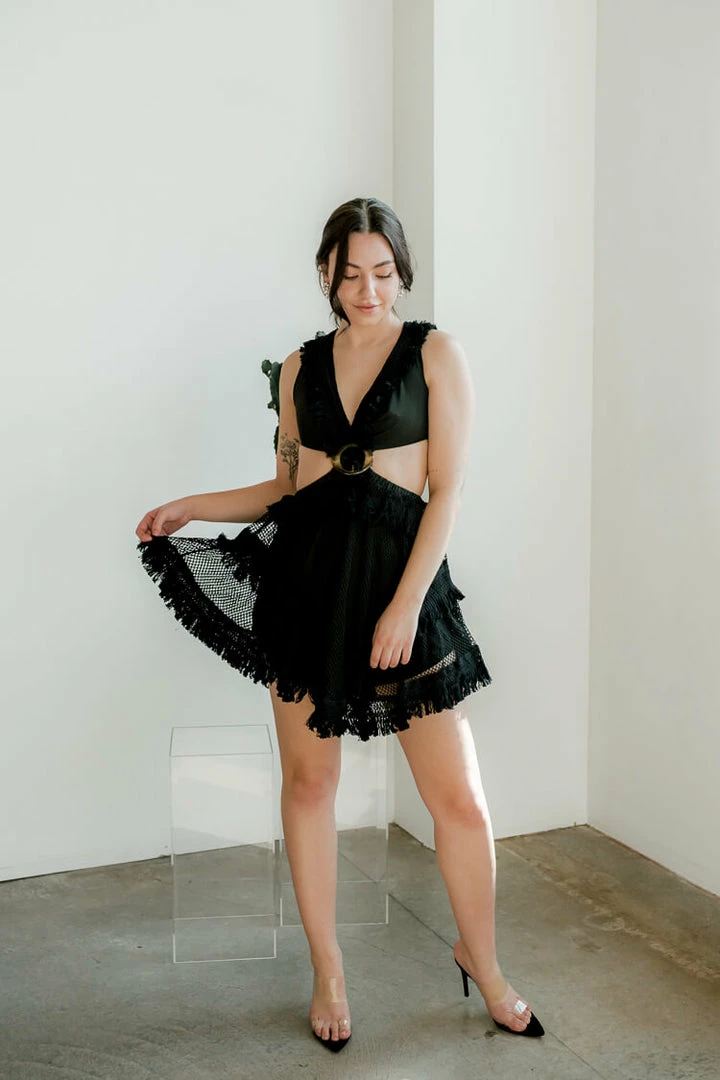Confête Salma Black Crochet Mini Dress Clothing