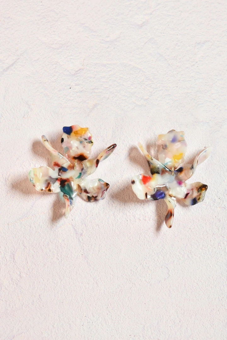 Featuring sculpted petals made from multi-colored actetate, these earrings are a pretty addition to any wardrobe. Throw on with our Nantucket Midi Dress for a classic and clean summer look.
