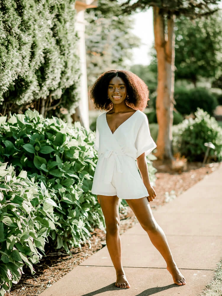 Looking for the perfect little white romper for vacation or bridal events? Try the Cayman White Cotton Romper. Crafted from 100% cotton, its natural wrinkled look gives it a relaxed feel. Wide V neckline. Pull-on styling and finished with a matching belt.