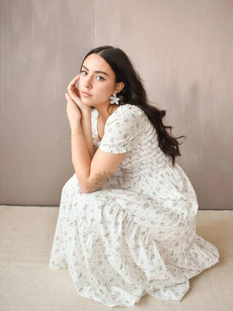 Our Violet dress romances with its allover ditsy floral print, soft cotton tiers and faint Swiss Dots. This airy maxi has a square, elasticized neckline and features a smocked bodice with delicate pastel embroidery and soft puff sleeves. 100% cotton. Fully lined. Comfy and chic, this is our ideal spring maxi dress.