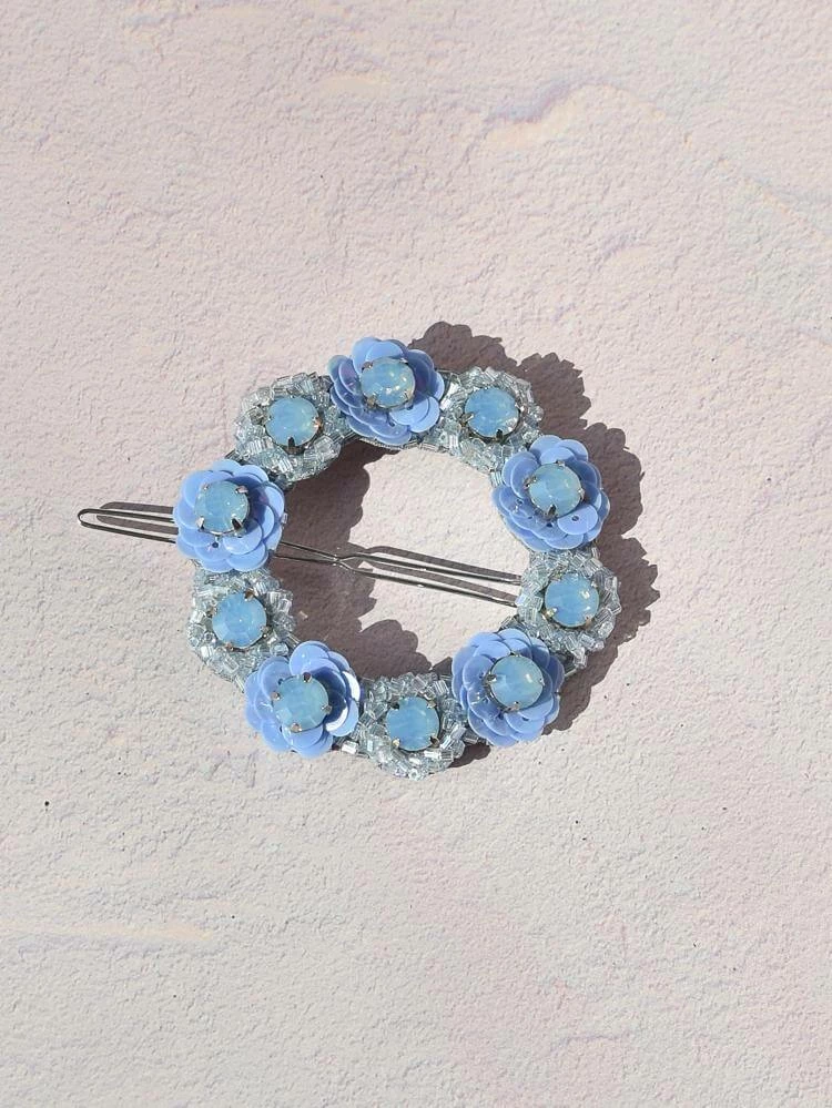 Featuring a romantic sequin floral design, the Adalia Open clip is a charming addition to your wardrobe. We love it with soft, tousled waves and our Rose mini dress.