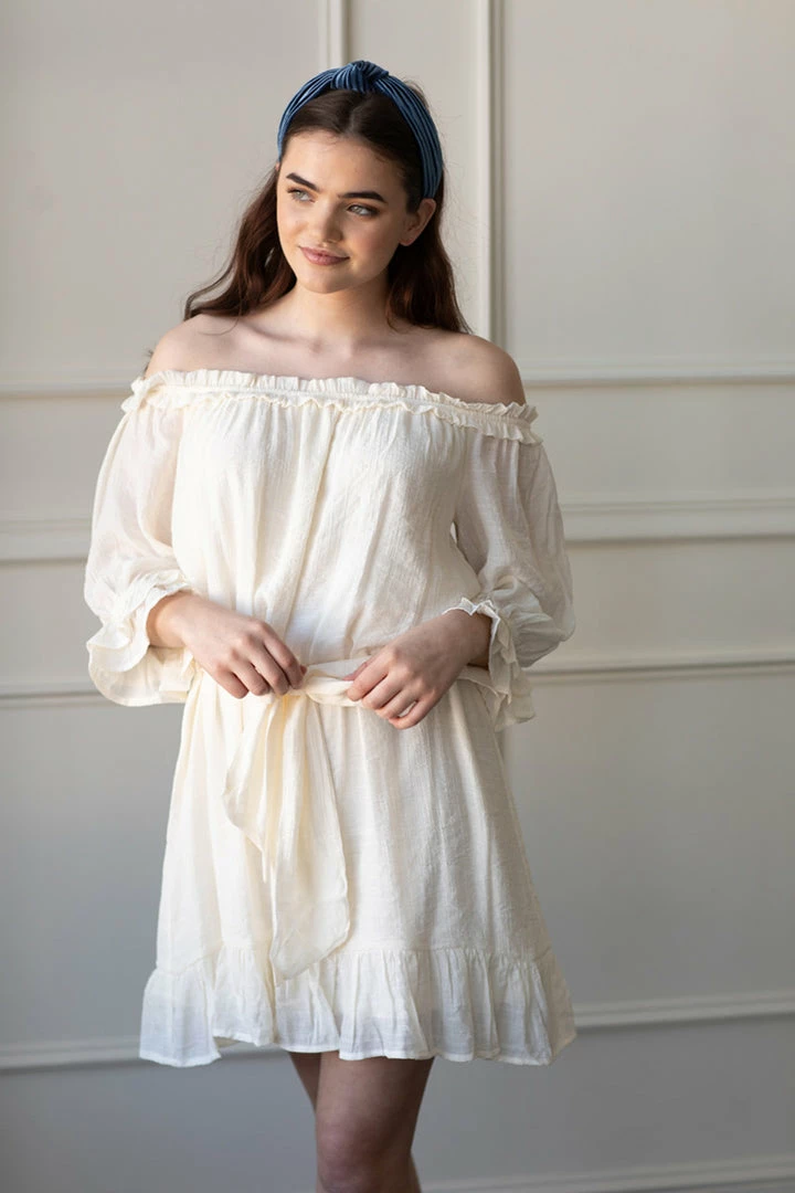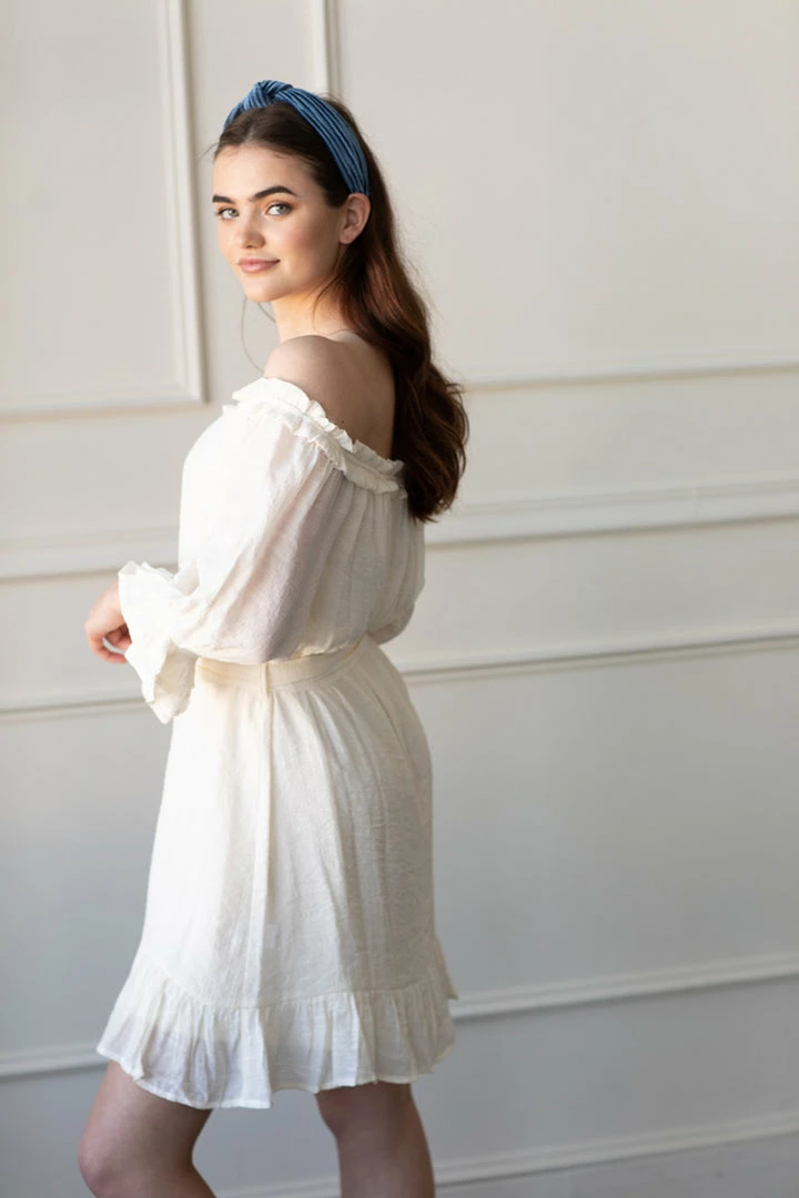 The perfect addition to your vacation suitcase: the Iguazu Off the Shoulder Belted Mini. Named after a trip to one of the world’s seven natural wonders, this dress features lightweight fabric, self-tie belt and ruffled trim.