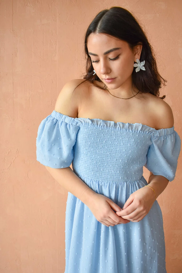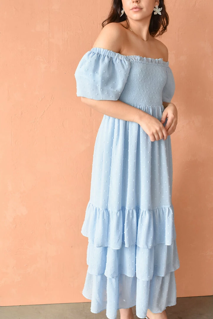 Free The Roses Clothing Praiano Light Blue Swiss Dot Maxi Dress