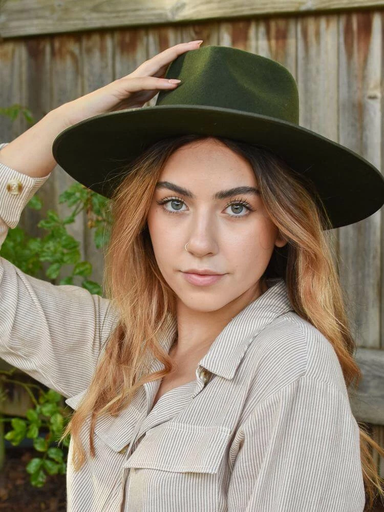 Meet your new favorite fall hat: Lack of Colorâs Forest Green Rancher. This fedora style hat is made from 100% soft Australian wool in a rich dark green and designed with vintage menswear in mind. Trimmed with a tonal grosgrain ribbon.Â