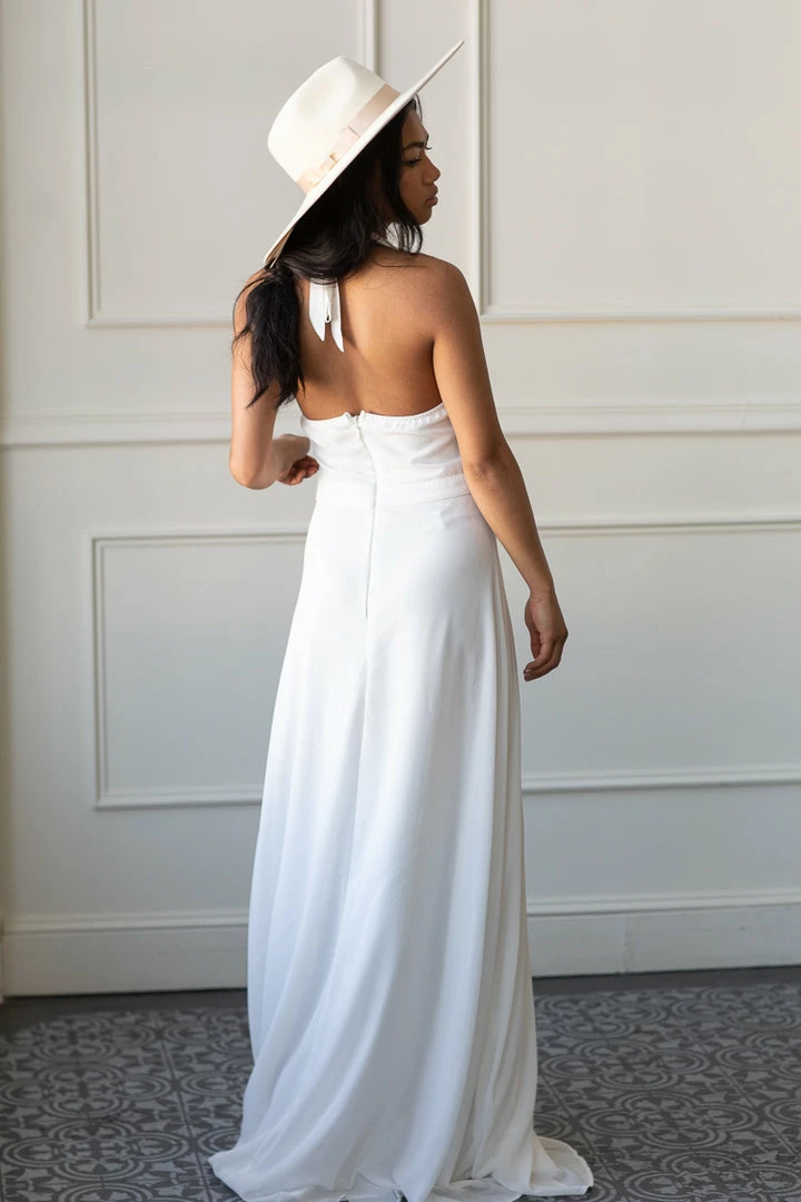 Bring the drama at your bridal events with our Montana Ivory Bone hat. For a jaw-dropping rehearsal dinner look, try pairing it with our Meghan Halter Dress. Due to the light color and nature of the wool dyeing process, some flecking or marks may be present in wool.