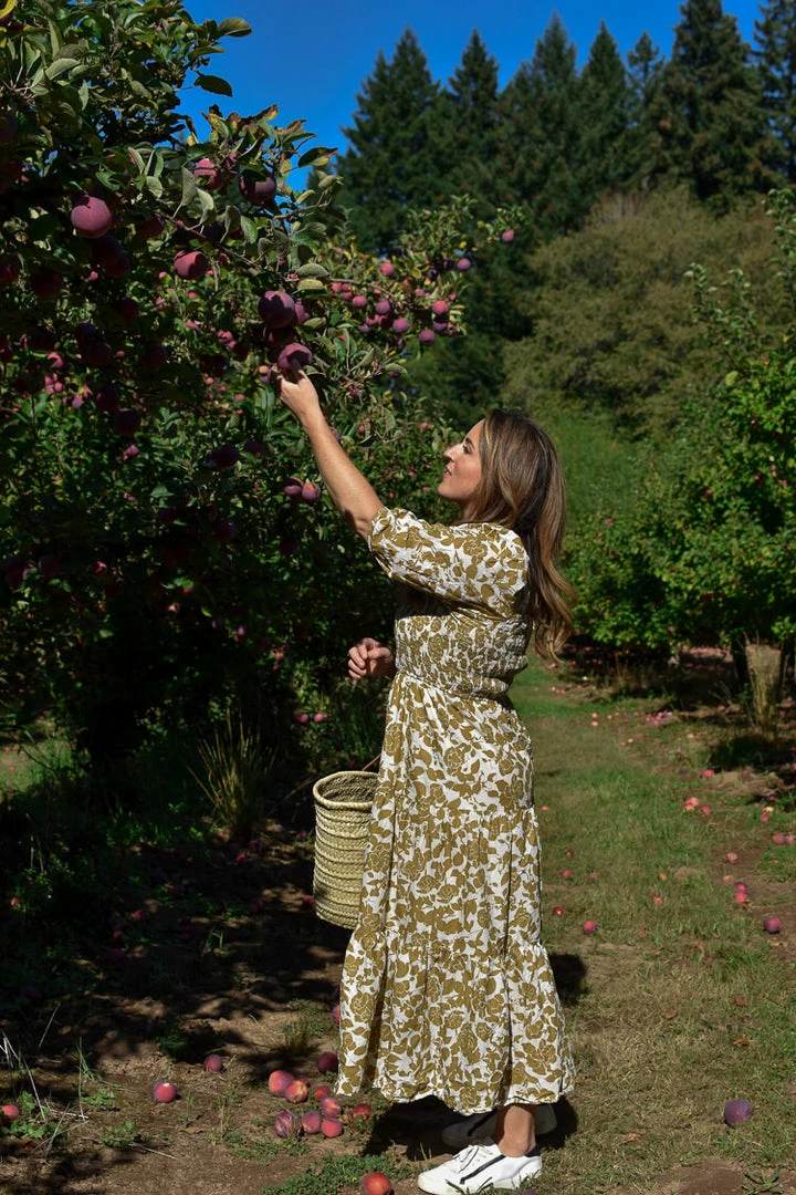 Designed in a rich fall floral print, the Dasha dress features an ultra-romantic and easy-wearing silhouette with its smocked bodice, square neckline and soft statement sleeves. This is how to do a fall floral!