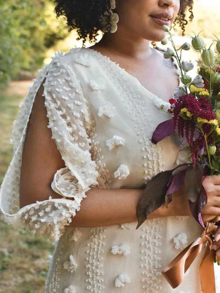 The Lucy Ivory Pom Pom Dress is for the girl who loves texture! This cream-colored plus size mini dress is detailed with peekaboo sleeves, soft 3D cotton puff balls and v neckline. Who doesn’t love a little white dress moment? Pair with our Magnolia Double Drop earrings.