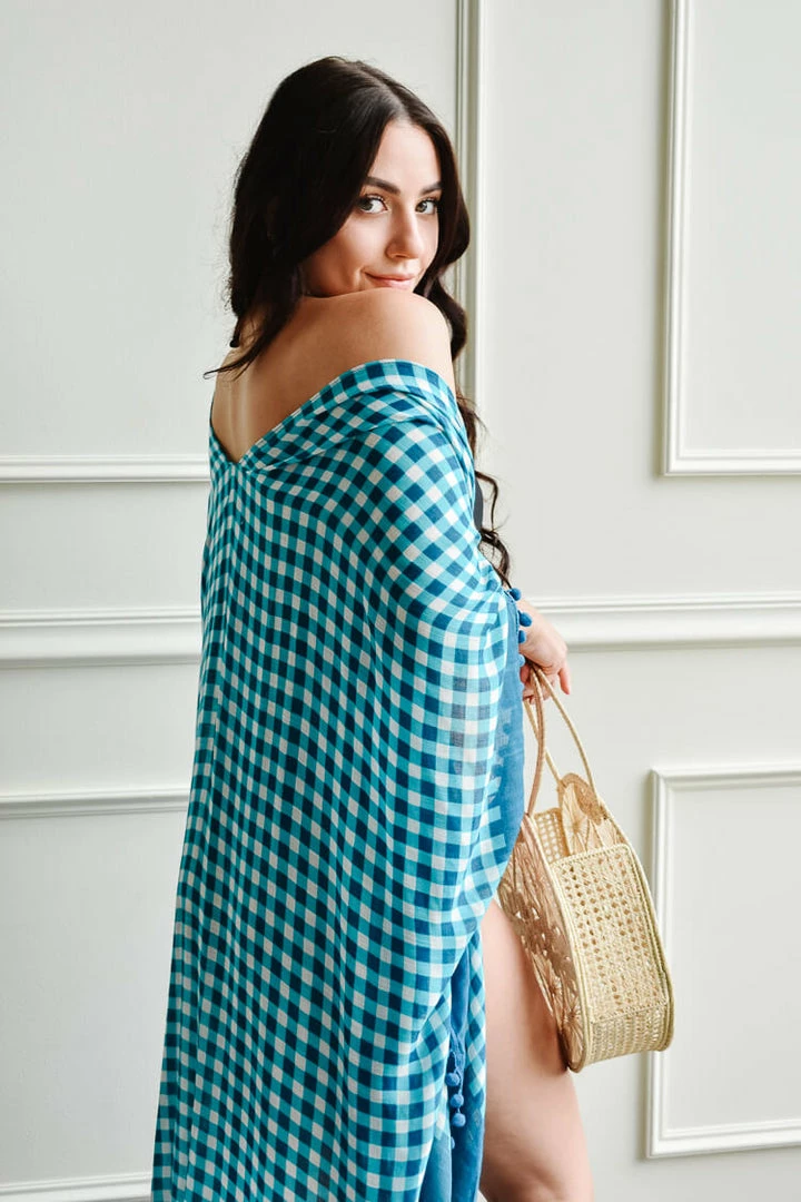Shiraleah Clothing Italia Teal Gingham Beach Cover-Up